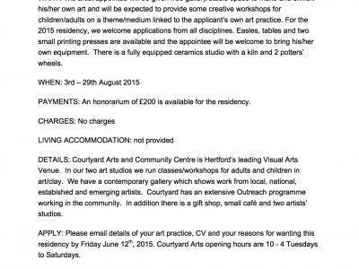 Call for Entry - Artist Residency 2015