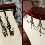 Burgundy & Brown Velvet Studded Choker Steampunk style brass effect studded choker in burgundy and brown velvet with brass chain and small keys detail. Length = 32.5cm +7cm extra chain Pendant at longest point = 5.....Read more