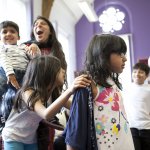 Choir with paper light sculpture