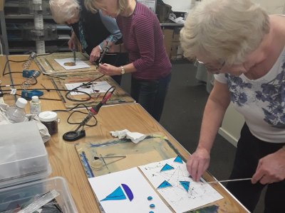 Come and learn how to cut glass and solder to create a stained glass piece using the copper foil technique with Suzanne Rafellinni. 10:00-4:00