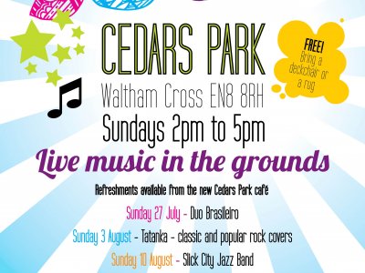 Free live music in the grounds of Cedars Park from 2pm - 5pm.