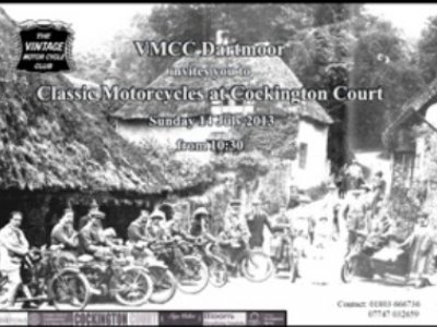 The VMCC (The Vintage Motorcycle Club) will be displaying an array of vintage and classic motorcycles on the front lawn and in the Sea Change Craft Studios area at Cockington Court on Sunday July 14th 2013 from 10.30am to 4.00pm.
