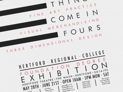 Hertford Regional College are pleased to present their sixth annual degree show, offering an insight into the creative endeavours of our fine art and design students after an intensive two year study programme. The work on display results from a rich and varied learning experience, a cumulative engagement in art and design practices, informed through critical historical and contextual debates as well as valuable and extensive work experiences. Foundation Degrees are stand alone Higher Education qualifications, equivalent to studying the first two years of an honours degree, and are highly valued by employers.