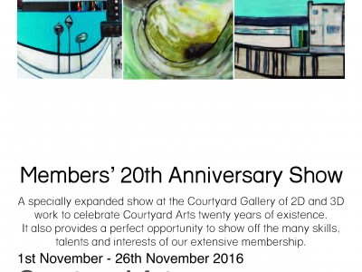 Courtyard's annual members' show opens today - a specially extended exhibition of 2D and 3D work celebrating our 20th anniversary. There is a huge variety of art work from painting, photography, drawing, textiles, ceramics, paper crafting. Most of the pieces are for sale, prices start at £5!