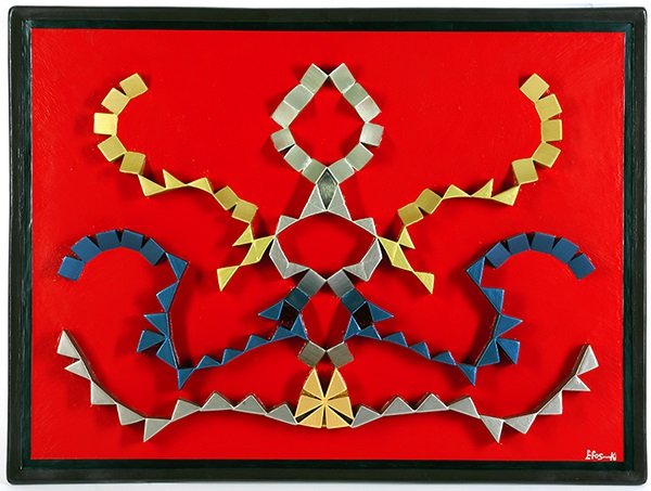 This Art works are three-dimensional, made entirely of wood, using a mixed technique (inlay-wood sculpture - painting). Initially small pieces are collected from various kinds of carpentry, then the pieces of recyclable wood placed in plywood base to create or form the Design, then treated with sandpaper so that it is smooth ή to be smoothed, the frame is being prepared which is an integral part of the <table> project and finally repositioned in the original plan and glued or gum and polished, rubbed and stained with acrylic paints. Each project is unique and very difficult to replicate or almost impossible even by me the artist it’s a laborious and a time consuming task. The themes of the projects have to do with both nature and man, but there are also abstract designs.