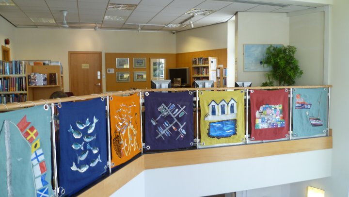 Brixham Library also offers a display space to artists on a monthly basis. ‘The Ledge’ is a an open area above the entrance doors to the building and is viewed from below, on the staircase that runs around it, and from the upper floor. The space has recently a glass front and full facilities to hang work and show 3D pieces.
