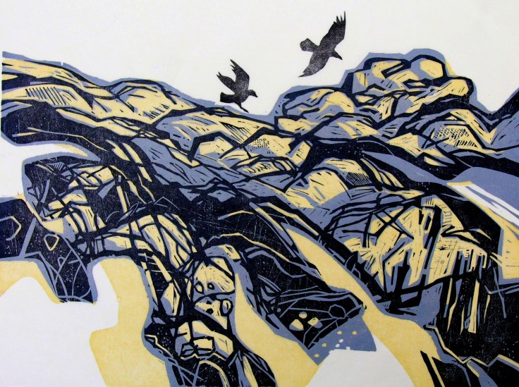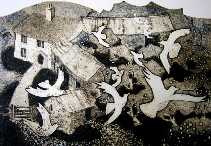 LIE OF THE LAND Printmaking exhibition by Press Gang Latest work by 12 South Hams printmakers at Harbour House The Promenade Kingsbridge Devon TQ7 1JD...