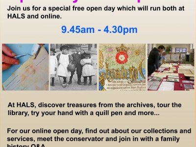 Find out all about Hertfordshire Archives & Local Studies at our Open Day, programme below. Please note this is a different programme to the online Open Day, with the exception of the afternoon family history session. You are welcome to book for both morning and afternoon. Due to ongoing restrictions, numbers for this on site event are limited. View the programme under 'Further Information'.