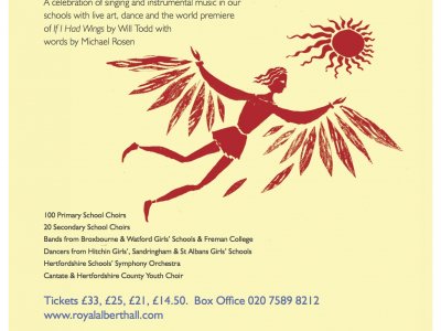 A celebration of singing and instrumental music in our schools with live art, dance and the world premiere of If I Had Wings by Will Todd with