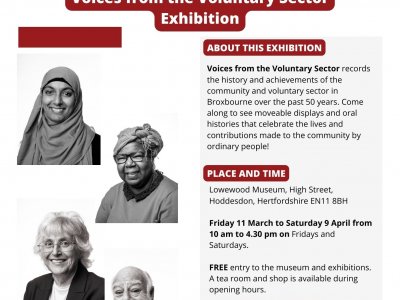The exhibition was produced by the CVS for Broxbourne and East Herts with input from students at Hertford Regional College and was funded by the National Lottery Heritage Fund.