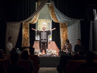 HIP transports the audience, in this extra-live performance, to a cosy living room with hypnotic OHP, cushions, incense, tequila and nibbles. Jolie’s soothing and passionate storytelling interweaves Anne's real letters and diaries with vestiges from her own life to reveal an immediate and clear association between the two women.