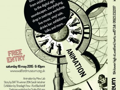 Kinetic animations from Victorian times to the digital age, soundscapes, storytelling, drop in zoetrope workshop, live music, vinyl sale, drinks bar, exhibitions, talks and much more!